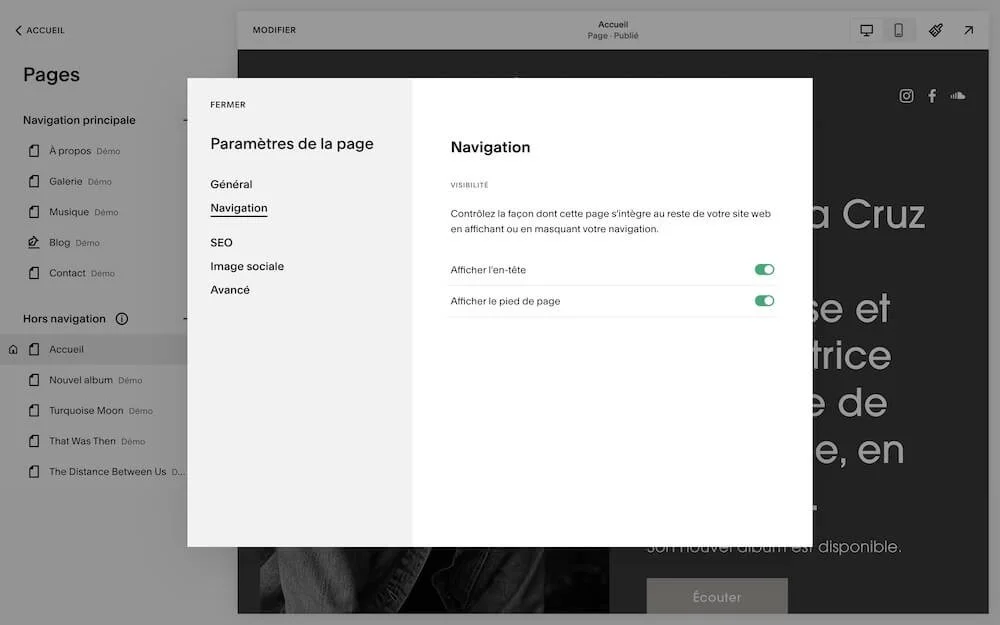 → Cacher l’en-tête et le pied de page directement depuis Squarespace (méthode la plus simple)