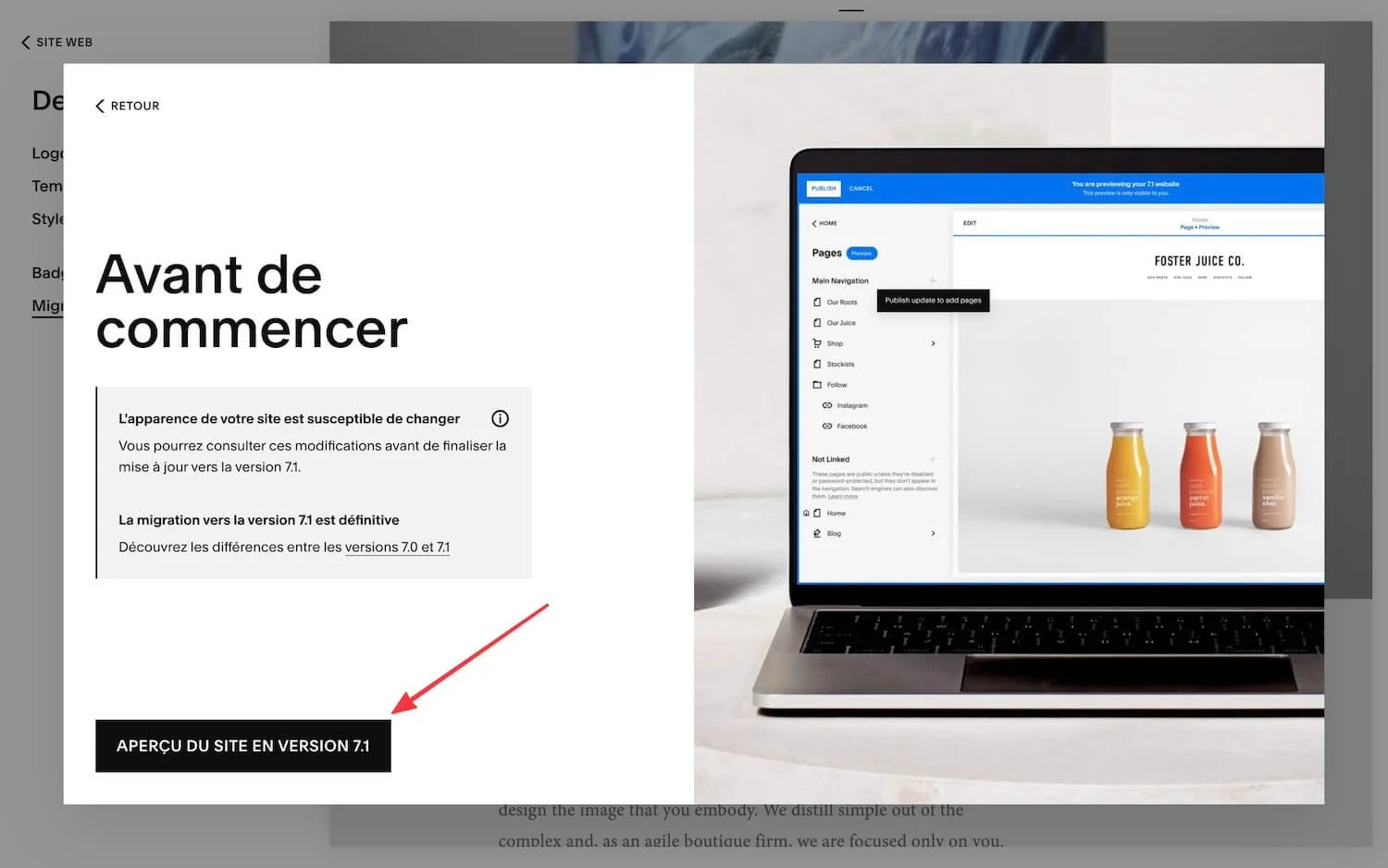 Comment passer de la version 7 à la version 7.1 de Squarespace (via le nouvel outil de migration)