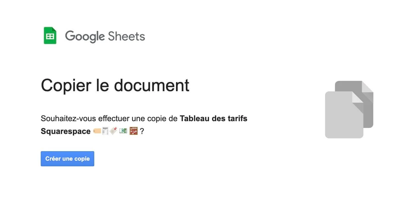 Cliquez sur le bouton ci-dessous pour créer une copie du tableau.